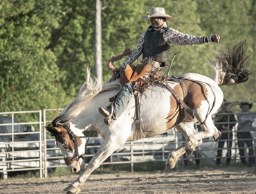 Pour se tenir, le cow-boy n'a qu'une sangle munie d'une poignée, serrée autour de la poitrine du cheval, et son sens de l'équilibre: dans sa situation, la force de ses cuisses sert d'autant moins qu'il est noté, entre autres, pour ses coups d'éperons. Le cheval est noté aussi: pour ses ruades, ses sauts et ses changements de directions destinés à déséquilibrer son cavalier.