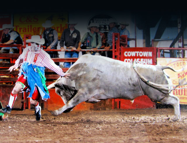 En compétition, un cowboy projeté au sol par 875 k de taureau enragé, sonné jusqu'à ne plus savoir où il se trouve, devient une cible facile pour l'animal quelque peu contrarié. Dans ce cas, les cavaliers de secours sont impuissants devant une charge possible du taureau et c'est à ce moment qu'intervient le clown de rodéo qui, malgré son apparente nonchalance, connaît tous les trucs du métier et est en mesure de faire face aux imprévisibles sautes d'humeur de l'animal. Ça ne rate jamais, son apparition distrait le taureau qui en oublie le cowboy pour s'intéresser à cette nouvelle cible.